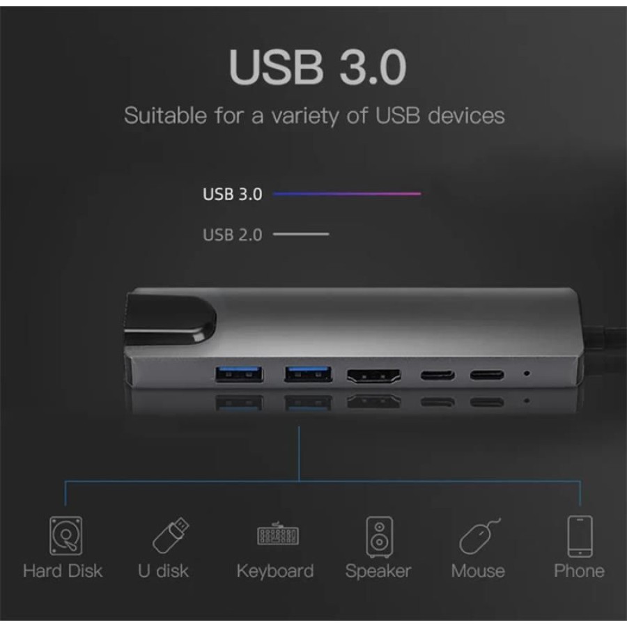 SENSEI TYPE-C 6IN1 HDMI COK FONKSIYONLU USB 3.0 DOCK STATION